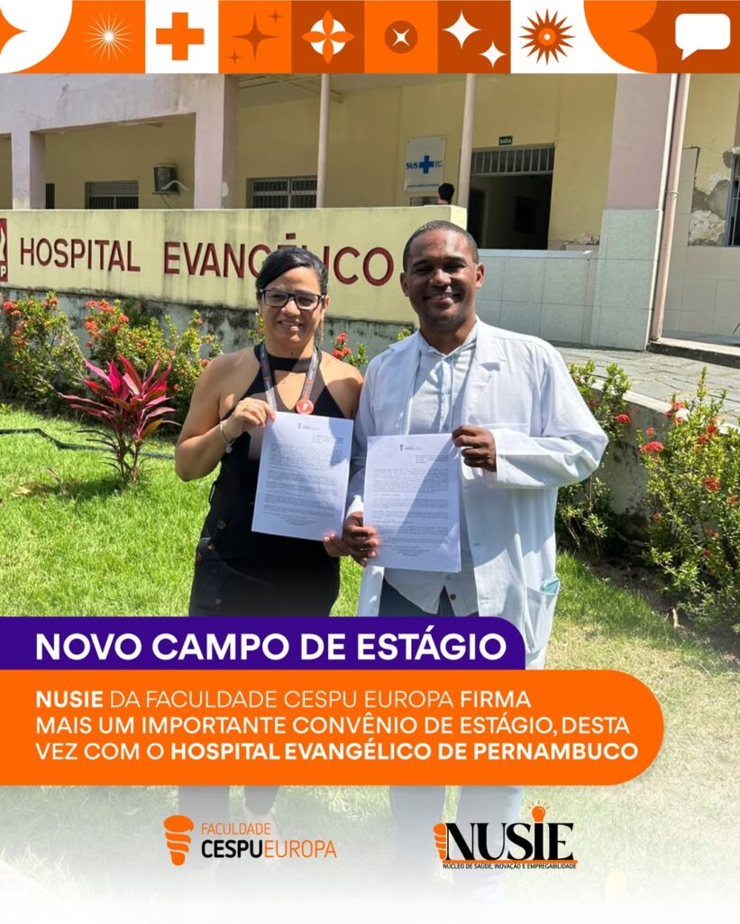 No último dia 12 de setembro, a Faculdade CESPU Europa, por meio do Núcleo de Saúde, Inovação e Empregabilidade (NUSIE), firmou um novo convênio de estágio com o Hospital Evangélico de Pernambuco. A parceria amplia as oportunidades de formação prática para os estudantes da instituição. A assinatura do acordo contou com a presença da professora Mércia Mendonça, coordenadora do NUSIE, e do Dr. Renato Soares, coordenador de Enfermagem do hospital. Para a CESPU, o convênio representa mais um passo na integração entre ensino e serviço de saúde, permitindo a expansão dos cenários de prática e contribuindo para a formação de profissionais mais qualificados para os desafios do cuidado em saúde. Ver essa foto no Instagram Uma publicação compartilhada por Faculdade CESPU Europa – Brasil (@cespu.europa)